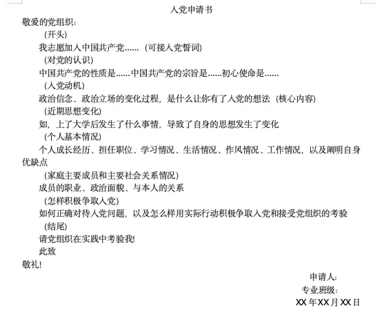 入党申请书的主要部分,一般写以下内容: