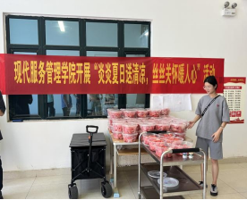 酷暑盛夏,热浪滚滚,连日来河南多地开启高温模式,最高气温可达40℃以上,为切实做好防暑降温工作,确保广大师生在校园平安学习,现代服务管理学院学生科积极开展夏日送清凉活动,为师生送去关心和关爱。