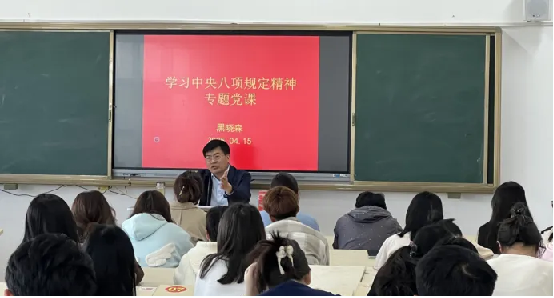 4月15日上午,南阳科技职业学院党委副书记黑晓森于北区星海楼合班教室,以《学习中央八项规定精神》为题,为学前教育学院和人文艺术教育学院的96名积极分子们带来了一场内涵丰富、思想深邃的专题党课。
