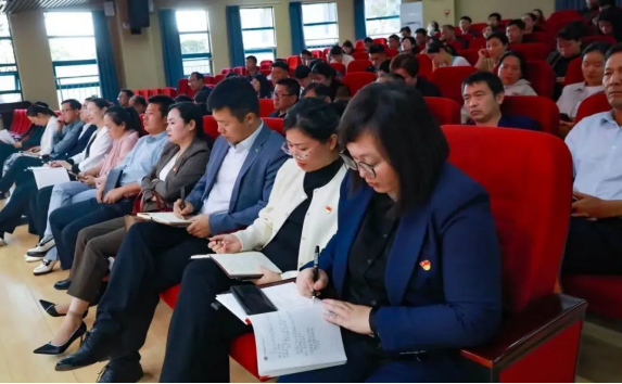 10月30日下午,在南阳科技职业学院北区教学楼一楼报告厅进行了一堂别开生面的主题教育党课。 本次党课以《习近平新时代中国特色社会主义思想科学内涵》为题,由校纪委书记张定群同志主讲,美术学院党支部书记朱彦丽同志主持,学校行政第一、第二党支部,马克思主义学院党支部、学前教育学院党支部、幼儿教育学院党支部、美术学院党支部、音乐学院党支部全体党员参加了本次学习。