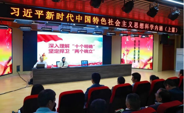 张定群同志紧紧围绕习近平新时代中国特色社会主义思想主要内容,以“科学”一词为切入点,将近代科技史的发展脉络同马克思主义哲学的内涵要义相结合,深刻分析了习近平新时代中国特色社会主义思想与其内在联系,讲述娓娓道来,分析旁征博引,举例生动实际,提高了广大党员对习近平新时代中国特色社会主义思想科学内涵的认识,增进了教师们立足学校发展新时期,奋进新征程的信心和动力。