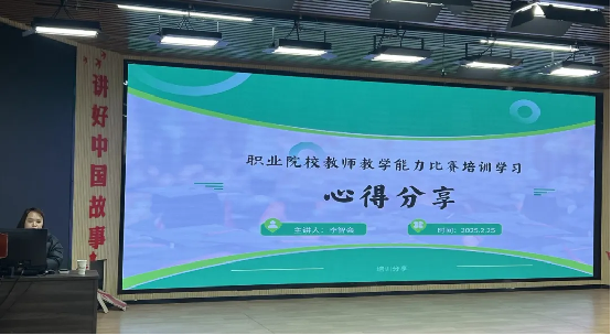 为深化教育教学改革,提升教师教学创新能力,助力教师教学能力大赛备赛工作,2025年2月25日下午,学前教育学院邀请了近期赴浙江金华职业技术学院参加国家级教学能力大赛专项培训的李智会老师,面向全院教师开展题为"对标大赛标准,赋能教学创新"的专题研讨交流会。本次活动以金华职院优秀参赛案例为蓝本,系统解析教学能力大赛备赛策略,全院57名教师参与研讨。