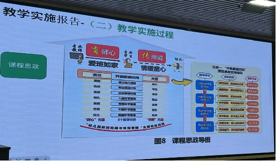 会上,李智会老师以金华职业技术学院历年国赛获奖作品如:《科学养猪》、《婴幼儿言语发展与指导》等作品赛证"融通的核心理念。通过对比分析省赛与国赛评审标准的变化趋势,结合学前教育专业特点,从选题策略、课程重构逻辑、学情分析、课程实施等方面展开解读,强调课程设计需立足"幼儿发展需求与行业岗位标准双导向",突出"岗课融通、育训结合"的职教特色。现场通过展示金奖作品中"四阶递进、虚实结合"的混合式教学模式及"三维动态"评价体系,为教师提供了可借鉴的创新路径。