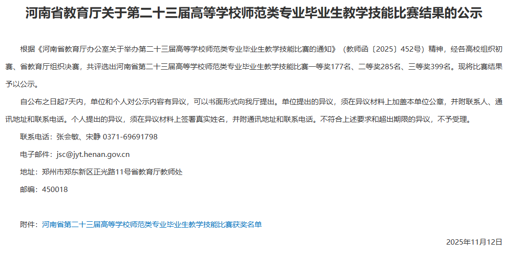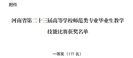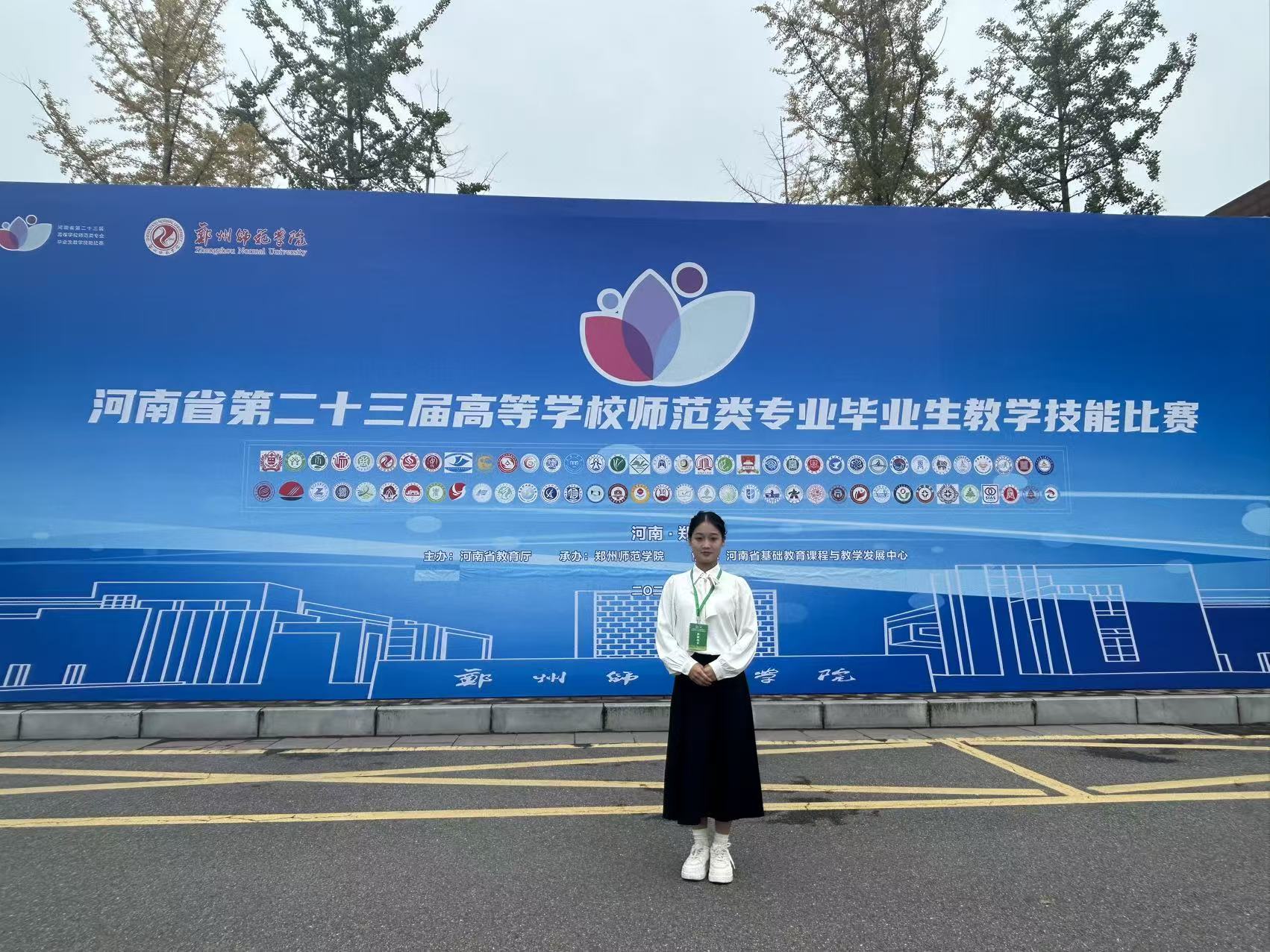 近日,从河南省教育厅传来喜讯,在刚刚落幕的第二十三届高等学校师范类专业毕业生教学技能比赛中,我校学前教育学院23高职学生马燕玲同学凭借扎实的专业功底、出色的临场表现和创新的教学理念,一路过关斩将,最终荣获省级一等奖的优异成绩,为学校赢得了荣誉。