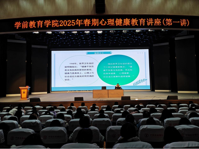 为进一步加强学生心理健康教育工作,普及心理健康知识,提升学生心理调适能力,2025年3月4日晚,学前教育学院于星海艺术报告厅成功举办“生如夏花,灼灼其华”心理健康教育专题讲座。本次讲座由辅导员屈飒老师主讲,21级全体学生及辅导员齐聚一堂,共同开启了一场温暖而深刻的心灵探索之旅。