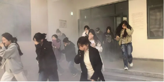 下午2点20分,演练正式拉开帷幕。随着一阵急促的哨声在北区5号宿舍楼响起,打破了原本的平静。同学们迅速反应,在学生干部的引导下,用湿毛巾捂住口鼻,低姿前行,按照预定的疏散路线,有序地向宿舍楼外撤离。整个疏散过程紧张而有序,没有出现拥挤、推搡等混乱情况。在短短几分钟内,全体同学就安全撤离到了指定的集合地点——北区小操场。