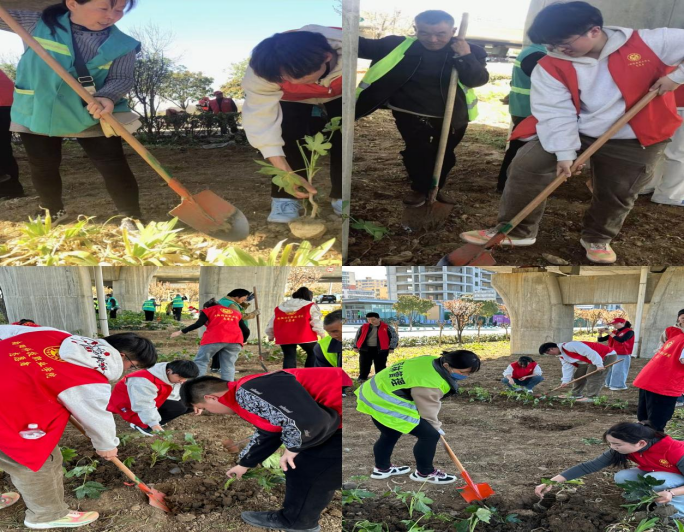在种植区域,城管干部职工耐心指导,志愿者们分工明确,配合默契。有的同学手持铁锹,用力地挖着树坑,一锹一锹的泥土被翻起;有的同学小心翼翼地将绿植幼苗放入树坑,扶正、培土,每一个动作都细致入微,仿佛在呵护着一个个幼小的生命。在大家的共同努力下,一株株嫩绿的幼苗在湿地里“安家落户”,为这片土地增添了新的生机与活力。