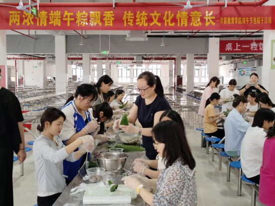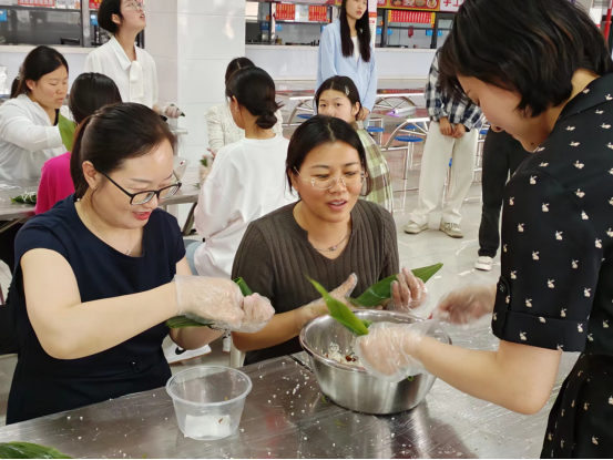 6月4日,包粽子活动在北区学生餐厅3楼进行。活动中,我院师生齐聚一堂,围着桌子有说有笑、其乐融融,一片片粽叶绿意清新,在糯米、红枣、花生等健康又好看的食物点缀下,一个个待包的粽子愈加精致美观。