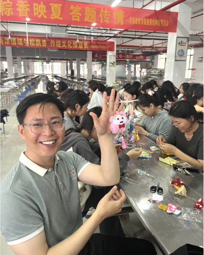 “何以致叩叩,香囊系肘后”赠以香囊代表着一份情深意重,同时也寄托一份对传统节日的情怀。在彼此的合作中,师生手中创造出一个个寓意吉祥的端午香囊,玲珑可爱又清香扑鼻,深受广大师生的欢迎。