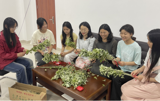 6月3日晚上在学院进行了捆艾草挂艾草的活动,当晚朱彦丽书记值班,她和学院团支书们一同为各班挂艾草活动做准备,师生一起把艾草制作成一捆一捆,并讲述关于端午节的传统文化与传统习俗,谈笑风生,其乐融融。