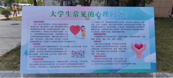 5月25日是全国大学生心理健康日,学生心理健康教育是实施培养高质量人才的重要环节,为增强我院学生心理健康意识,倡导关爱自己、关爱他人、关爱社会的理念,进一步加强我校心理素质教育,帮助大家更好地应对学习和生活中的压力,学前教育学院开展了心理健康知识宣传展板活动。