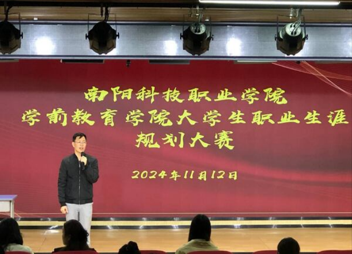 2024年11月12日下午,南阳科技职业学院学前教育学院成功举办了大学生职业生涯规划大赛院赛活动。活动旨在帮助学生明确职业目标,提升就业竞争力,为未来的职业生涯规划打下坚实基础。学前教育学院王沛副院长、徐晨璐科长、吴会旭科长、赵诚老师、裴小娟老师、屈飒老师出席活动并担任评委。