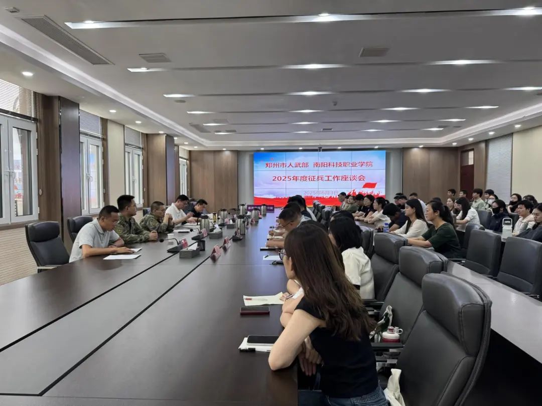 6月3日,我校在七号楼一号会议室召开征兵工作座谈会。邓州市人民武装部部长崔颖,我校党委委员、副校长刘彦,各学院相关负责人、征兵工作一线教师及退役士兵代表齐聚一堂,共商征兵工作发展大计,凝聚起爱国强军的磅礴力量。