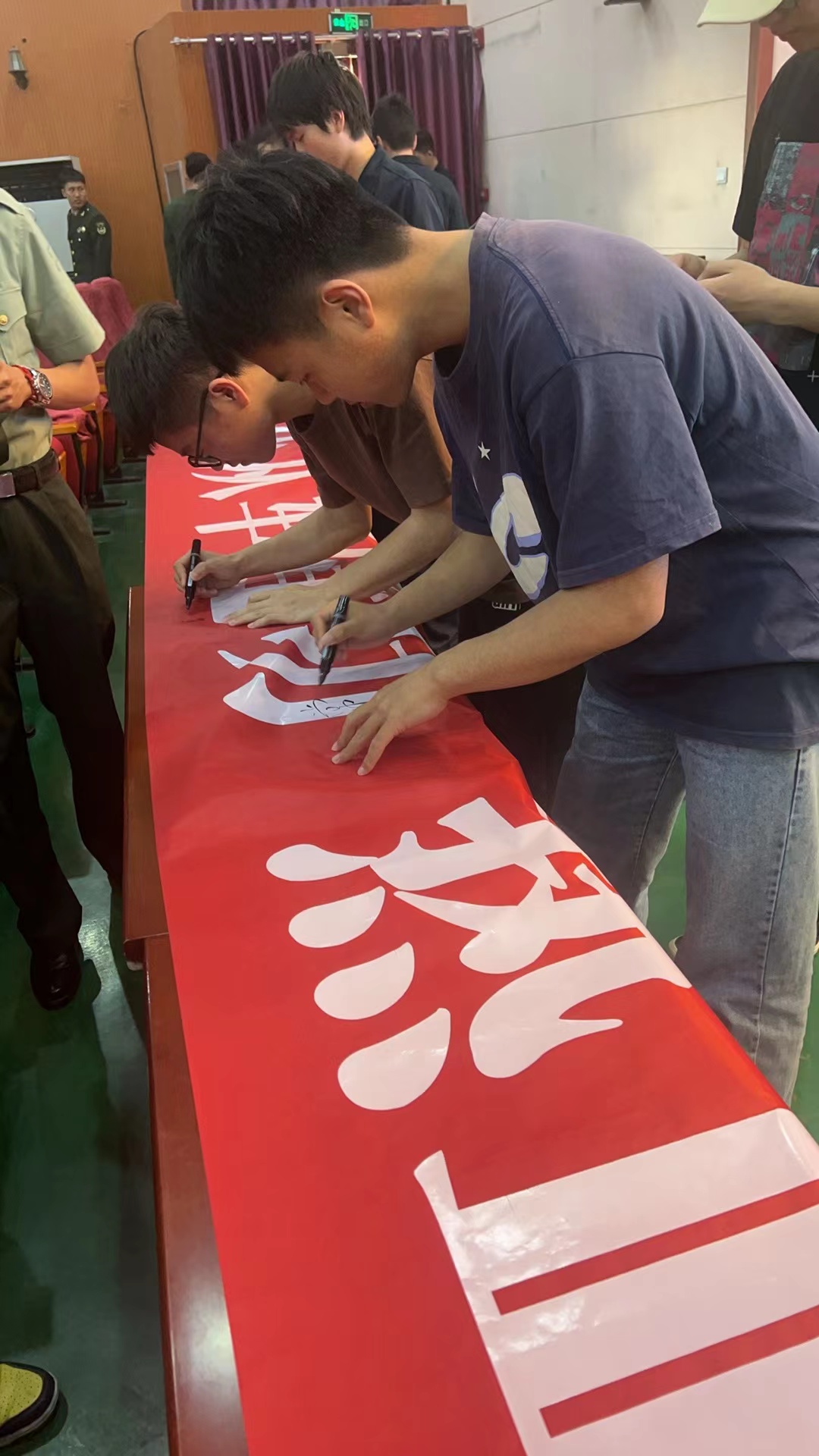 宣讲会后,同学们在条幅上签下自己的名字,表达献身国防建设的热情与担当。