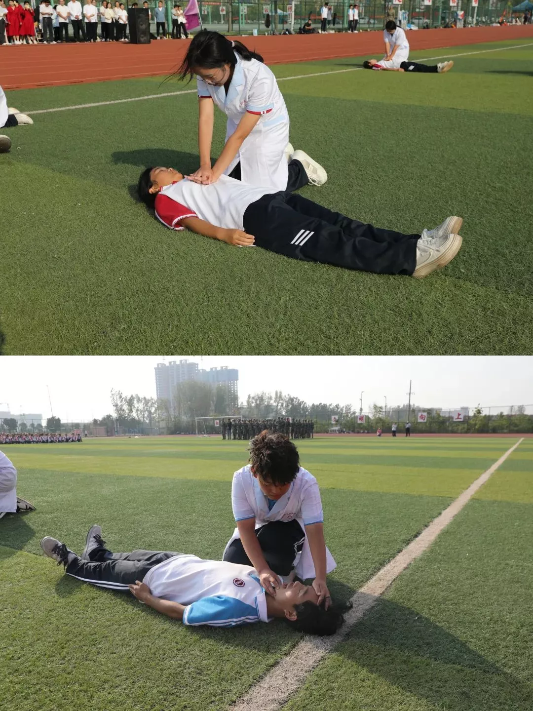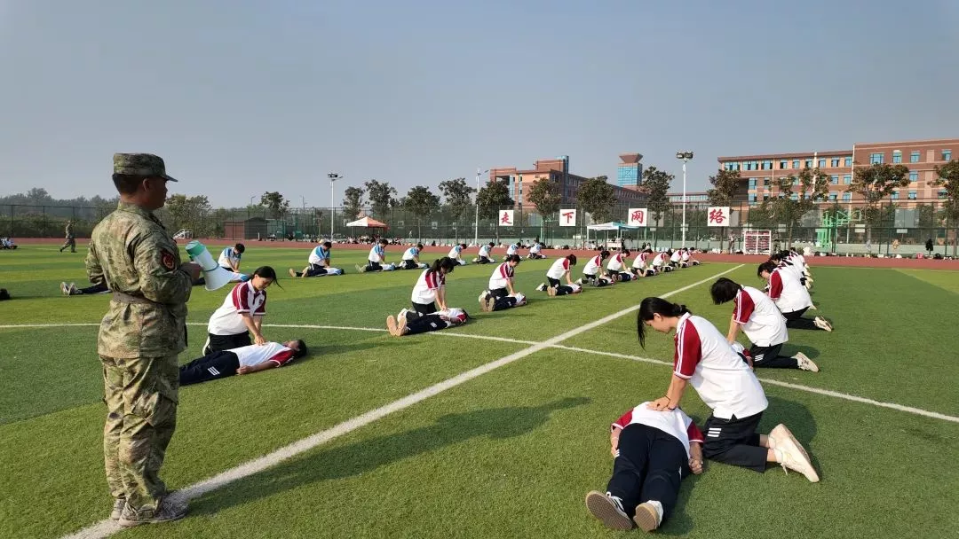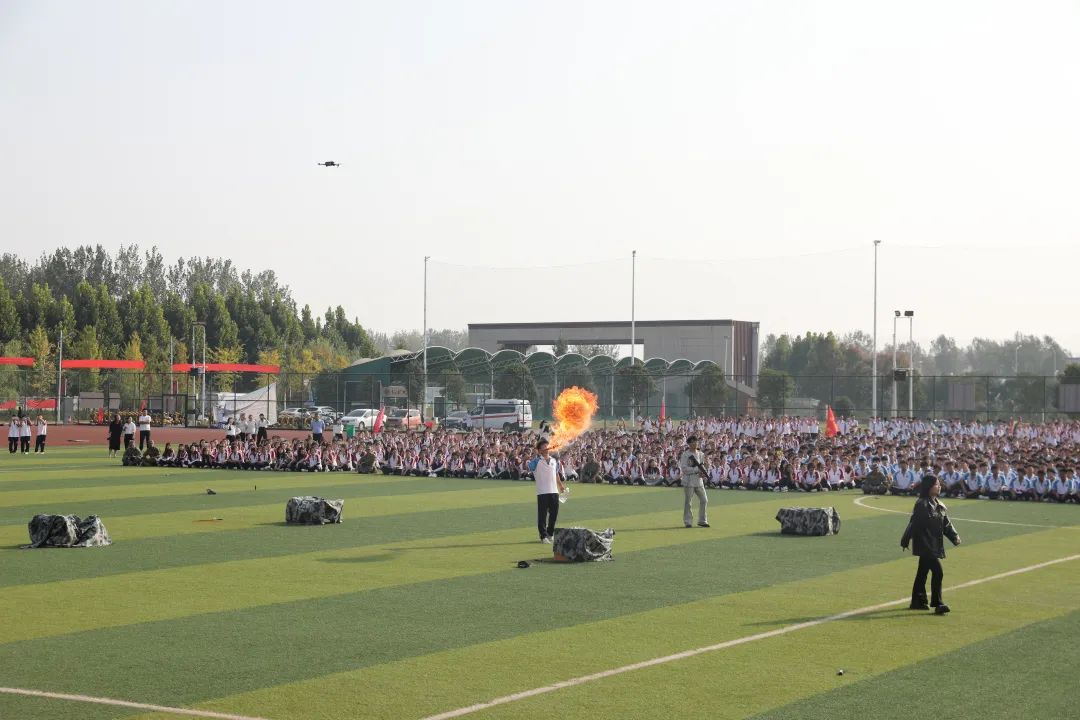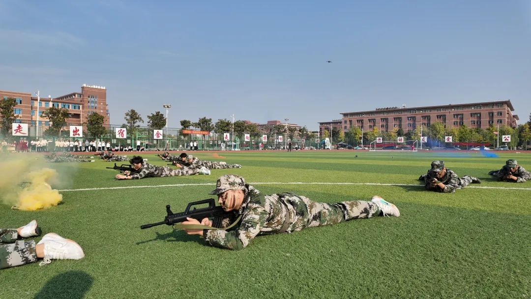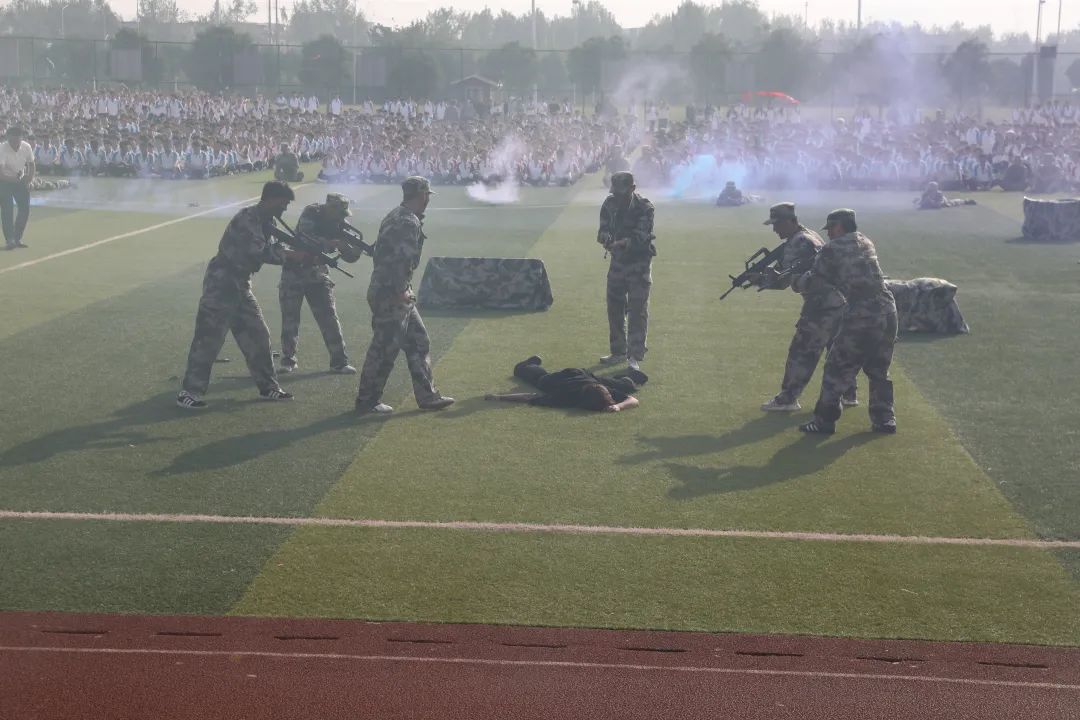 热血青春担重任,技能展示卫国安。国旗护卫队一令一动,参训新生及教官们眼神坚毅,军体拳、战术表演、战场救护、反恐演练等特色科目异彩纷呈,一招一式干净利落,博得阵阵掌声。