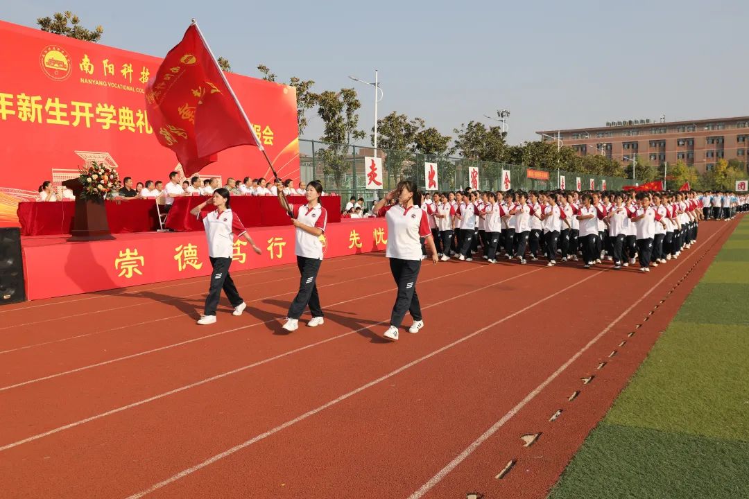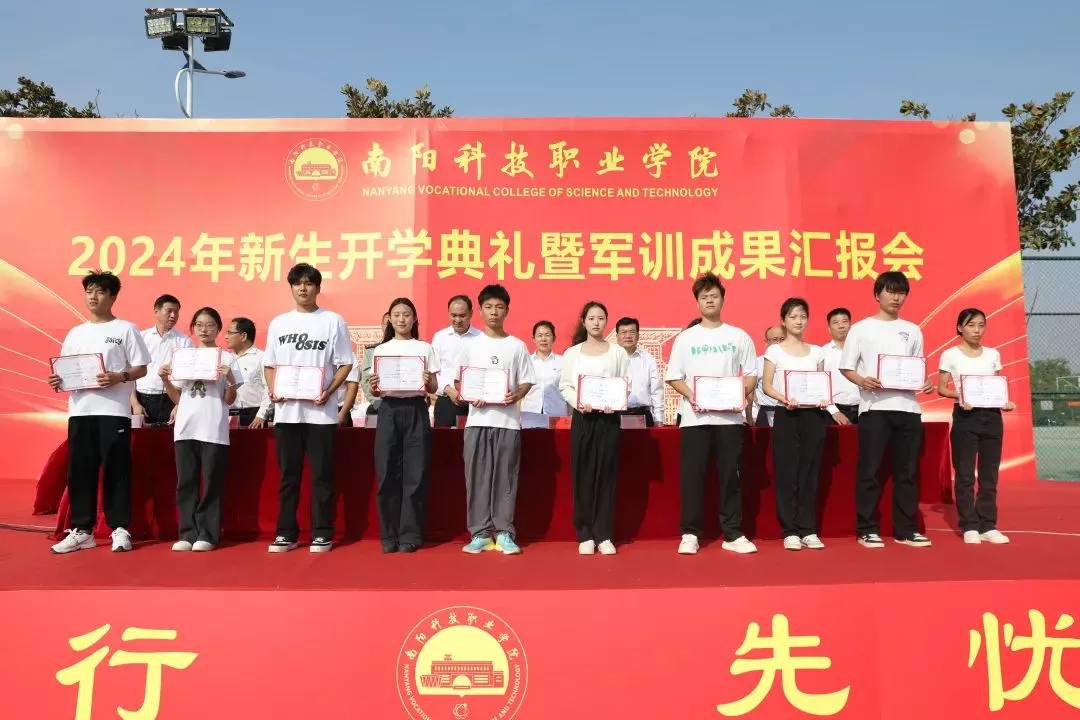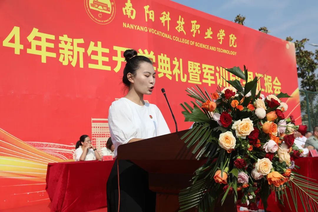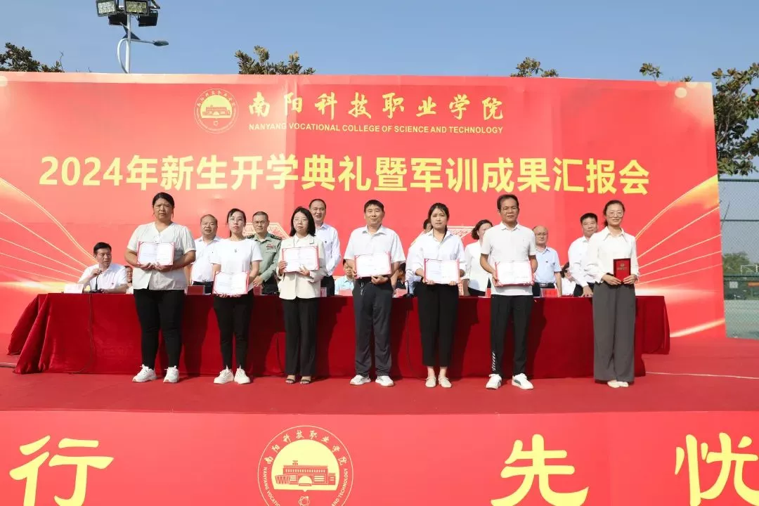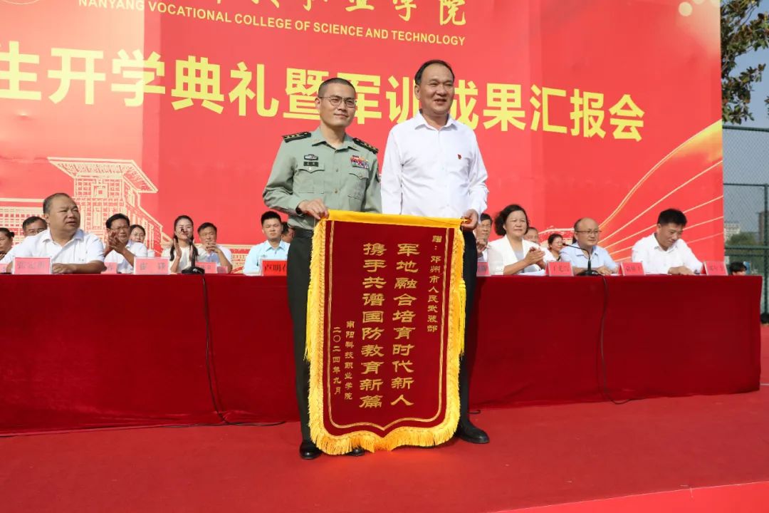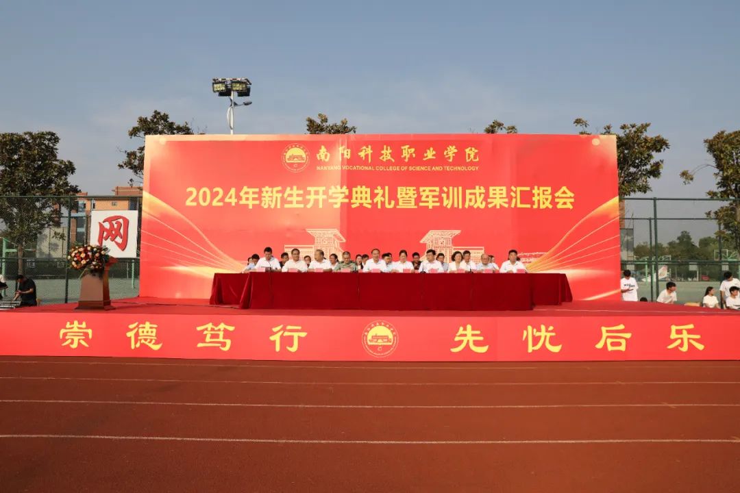 千锤百炼塑军魂,薪火相传爱国情。9月29日上午,南阳科技职业学院2024级新生开学典礼暨军训成果展示在南区田径场举行。全体校领导和承训单位领导出席大会,学校相关职能部门负责人、二级学院党政负责人、2024级新生辅导员及全体新生共同见证这难忘时刻。典礼由校党委委员、副校长刘彦主持。