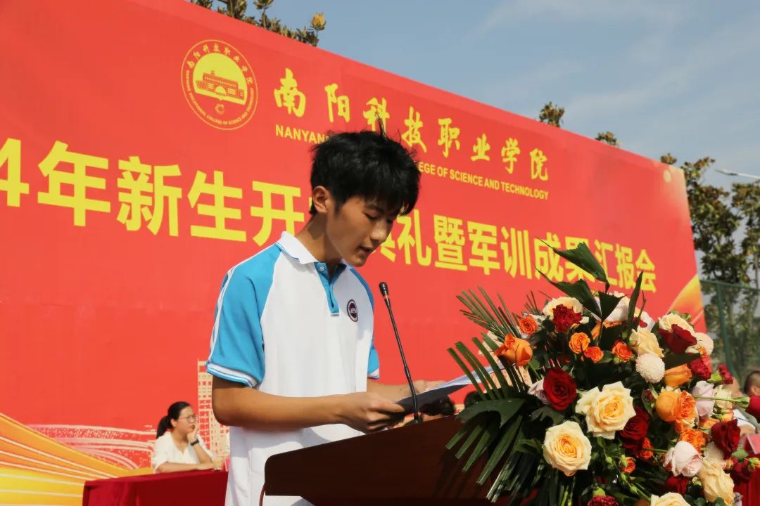 新生代表张子恒表达了对未来的憧憬和信心,承诺将严格遵守校规校纪,勤奋学习,提升自我,做一名乐学善思、精技强能的新时代南科学子。