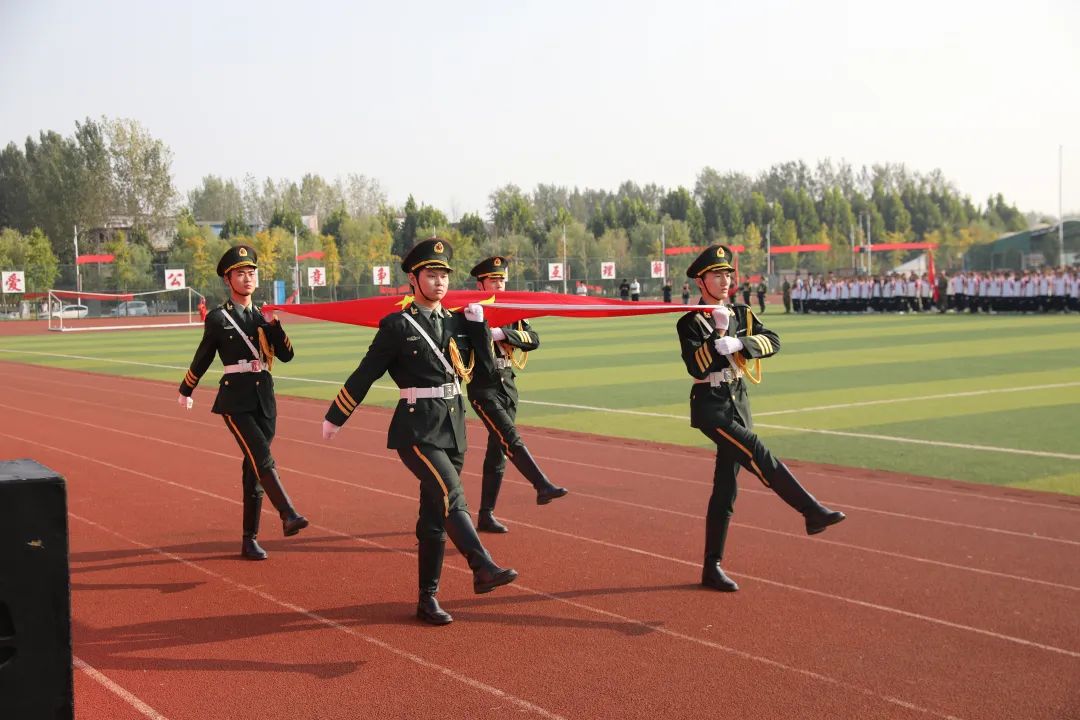 活动现场,国旗护卫队队员迈着整齐的步伐,护送国旗走向升旗台。面向国旗,承训部队教官及在场师生共同唱响国歌,表达对祖国的无限热爱和崇高敬意。