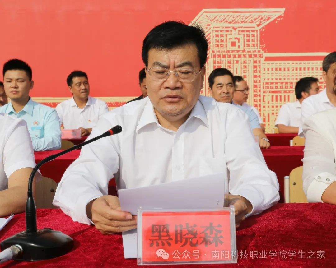 党委副书记黑晓森宣读《南阳科技职业学院关于公布 2024 年河南省普通高等学校三好学生、优秀学生干部、先进班集体认定结果的通知》