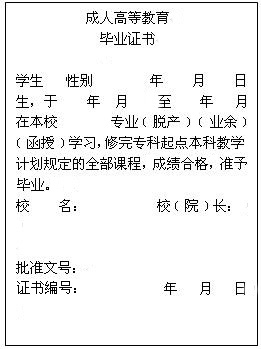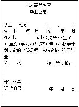 成人高等教育本、专科毕业证书(内容)