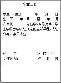 第二学士学位生毕业证书(内容)