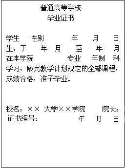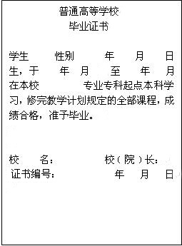 普通高等学校本、专科毕业证书﹝内容﹞