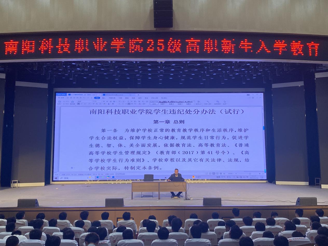 为帮助2025级高职新生快速适应校园环境、明确学业方向、树立规则意识,我校于近期精心组织为期两天的新生入学教育活动。活动聚焦新生在校学习生活核心需求,由教务处、学生处、招生就业处、安全保卫处、团委、图书馆等多部门协同推进,通过专场讲座和网络直播形式,为新生搭建起融入校园的“桥梁”,为其开启大学生涯奠定坚实基础。
