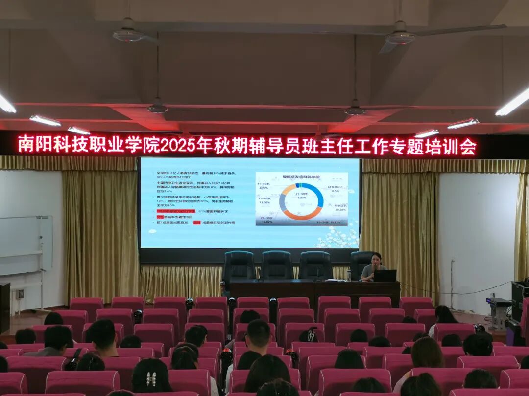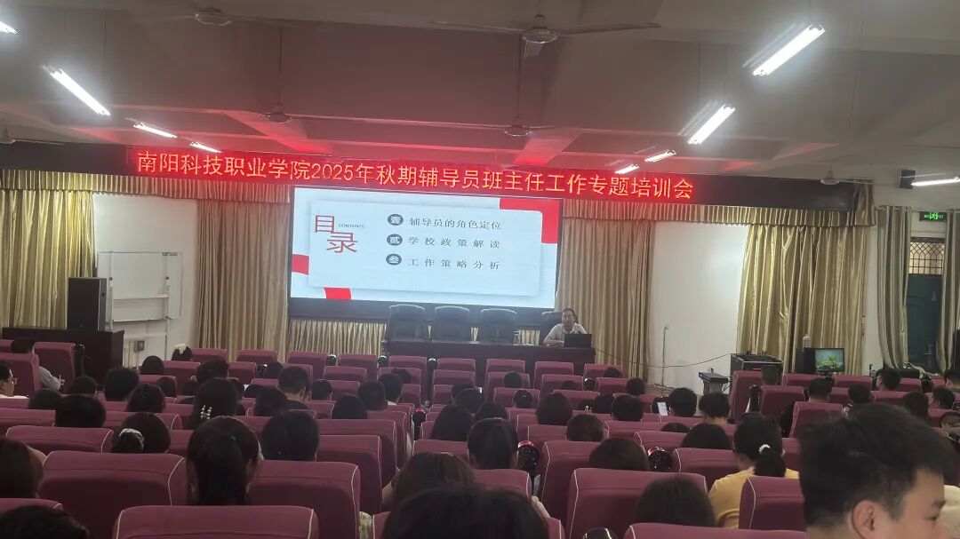 为进一步提升辅导员、班主任队伍的专业素养与履职能力,明确新学期学生管理工作重点,确保秋期各项学生工作平稳有序开展,南阳科技职业学院于8月29日下午组织召开2025年秋期辅导员培训会议。校党委委员、副校长刘彦出席会议,各二级学院主管领导及全校辅导员参加此次培训。
