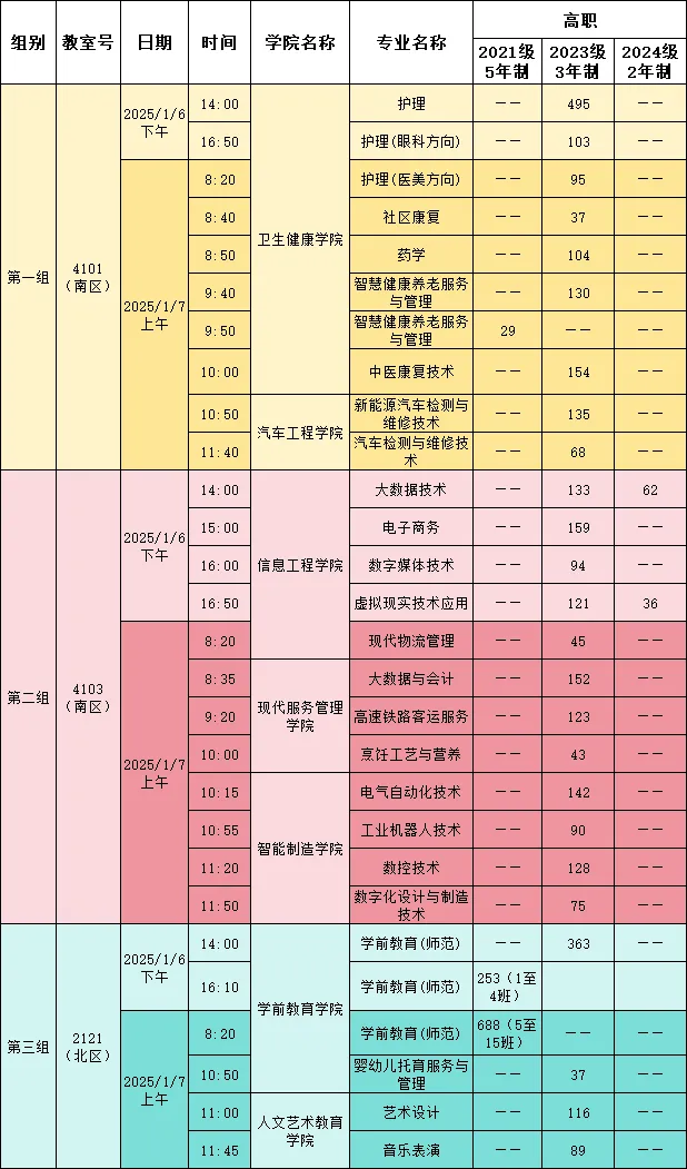 2021级五年一贯制、高职2023级三年制、高职2024级两年制学生。