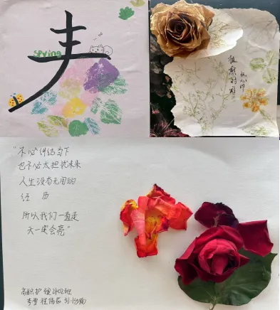 参与学生们走进校园,新发的绿叶、盛放的月季、路边摇曳的野花……大家在斑驳树影中挑选色彩明丽、形态独特的植物素材,采撷盎然春意。随后,大家将叶片与花瓣精心排列在白纸或棉布上,用木槌反复敲击。随着清脆的“咚咚”声,植物的汁液渗透纸张,勾勒出斑斓的轮廓与纹理,形成****的拓染作品。有的同学将不同种类的花瓣精心组合,创作出绚烂多彩的图案;有的同学则巧妙地利用叶片的形态,展现出简洁明快的线条感。这些作品各具特色,充分展现了同学们的个性化思维与创新精神。