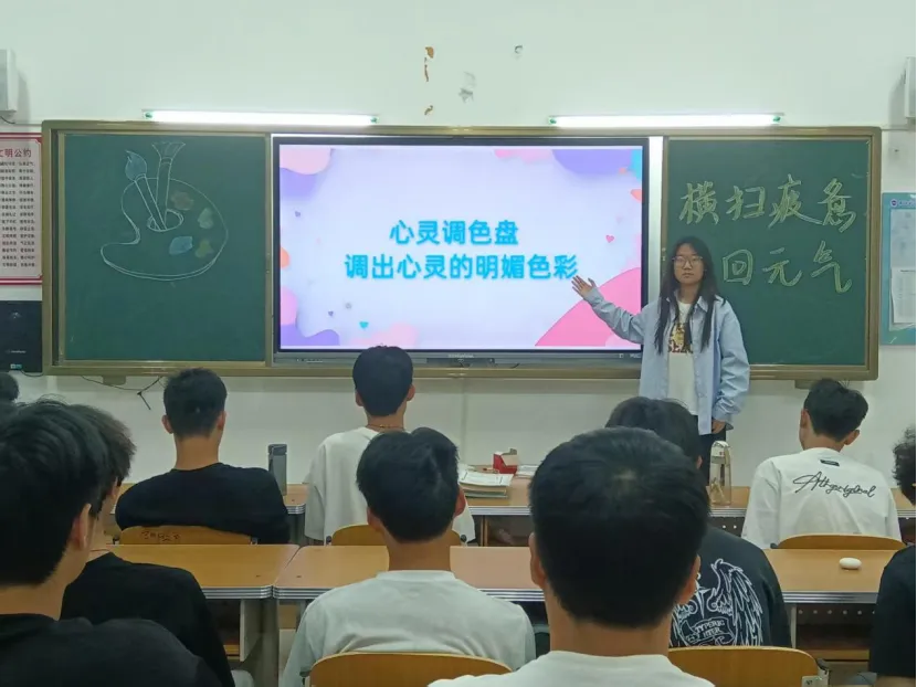 随后进入到“调出心灵的明媚色彩”互动环节,将此次活动推向高潮。同学们纷纷分享自己在生活中通过色彩调节情绪的经历,现场气氛热烈且融洽。各班心理委员还为在场同学们提供了实用的情绪调节建议,如在情绪低落时,可以多接触温暖明亮的色彩,如黄色、橙色等有助于提升心情和辅助正向心理暗示。