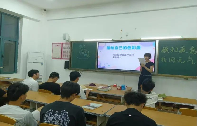 随后进入到“调出心灵的明媚色彩”互动环节,将此次活动推向高潮。同学们纷纷分享自己在生活中通过色彩调节情绪的经历,现场气氛热烈且融洽。各班心理委员还为在场同学们提供了实用的情绪调节建议,如在情绪低落时,可以多接触温暖明亮的色彩,如黄色、橙色等有助于提升心情和辅助正向心理暗示。