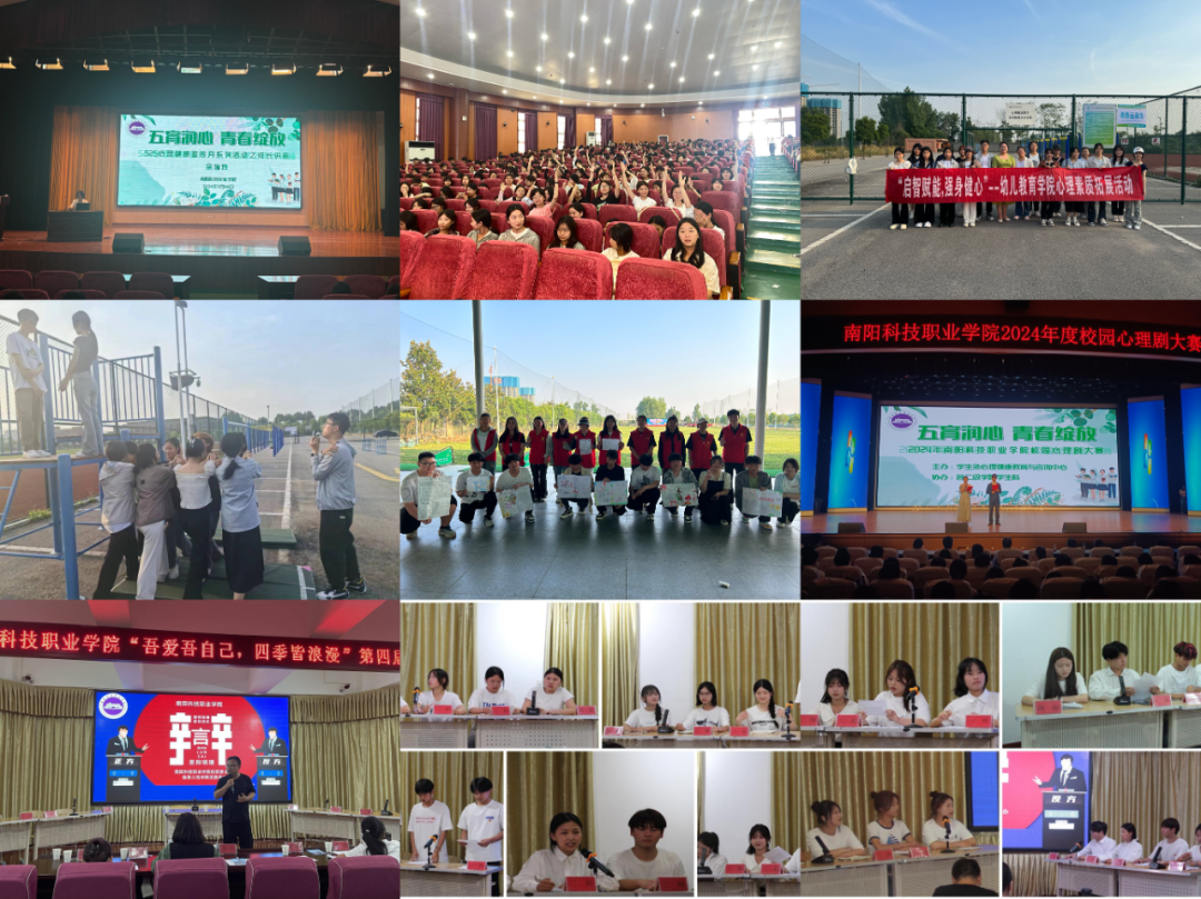 学校特别邀请南阳理工学院心理健康教育中心副主任余瑞玲以《善于自助 勇于求助 乐于互助》为主题作讲座。她从“心理危机有多远”“如何自助与自救”“怎么帮助身边的人”三个方面展开,引导同学们在遇到心理问题时找到正确渠道沟通,学会自助、互助、求助,能够健康幸福的生活。开展“团聚你我,青春向上、“强身润心、启智赋能”户外素质拓展活动,引导同学们在紧张热烈的氛围中抛开烦恼与压力,感受团队力量,提升应对挑战的能力;举办校园心理剧大赛,通过情景演绎的艺术形式,展现大学生日常生活情境和实际心理状态,引导同学们持续提升心理素养;开展心理辩论大赛,促进大学生对心理健康问题的深入思考,提高心理健康意识。