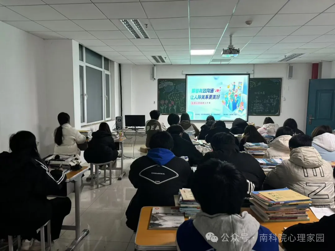 为加强我校大学生心理健康教育,帮助学生解决人际关系中面临的挑战与困惑,帮助他们掌握有效沟通技巧,进而构建更加和谐的人际关系,11月25日晚,我校组织学生观看“解锁有效沟通,让人际关系更好”主题心理健康公开课。各学院高度重视,精心组织,现场听课氛围良好,心理健康教师、辅导员与学生通过本次公开课共同探索、感悟、成长。