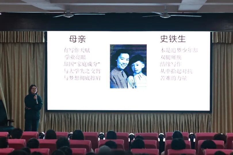 “倘若你觉得人生充满幸福,那么你可以读读史铁生。如果你觉得人生充满不幸,那么你一定要多读史铁生”。方梦瑶同学在分享《我与地坛》时,讲述了作者史铁生如何在地坛这个“精神家园”中完成对生命意义的深刻叩问,并透过母亲无声而坚韧的守护,诠释了苦难中的希望与温情,鼓励同学们在生活中遭遇挫折,应像史铁生一样,在苦难中寻找希望,珍惜每一个当下。