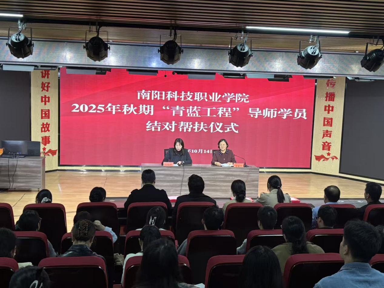 为助力新教师专业成长、强化师资队伍建设,10月14日下午,我校在文创楼一楼报告厅举行2025年秋期“青蓝工程”师徒结对仪式。党委委员、副校长丁光雪出席会议并讲话,各二级学院教学院长、教务科长、教学专干、教研室主任及2025年新进教师与指导教师共同参会。仪式由教务处副处长张兵怡主持。