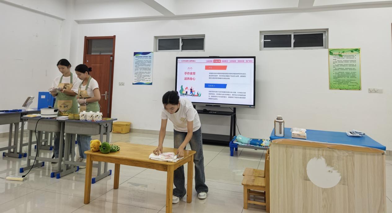 这份荣誉的背后,是师生团队的同心协力与日夜坚守。暑期高温酷暑,挡不住追梦的脚步。在接到进入决赛的通知后,学院迅速召集了陈俊峰,田铧铮,李硕,王明华,袁果等专家教师组建辅导团队,配合两位辅导老师为参赛学生作全面指导,在学院上下的高度重视和全力支持下,参赛的三名同学和指导教师们主动放弃休息,扎根训练场地,从教学设计的细节打磨到技能展示的反复演练,从应急方案的多次推演到心态状态的精准调整,每一个环节都倾注了心血与汗水。他们以“精益求精”的工匠精神,将学前教育专业的理论知识与实践技能深度融合,最终在全国赛场展现出我校学子“敢闯敢拼、能学善做”的优良风貌。
