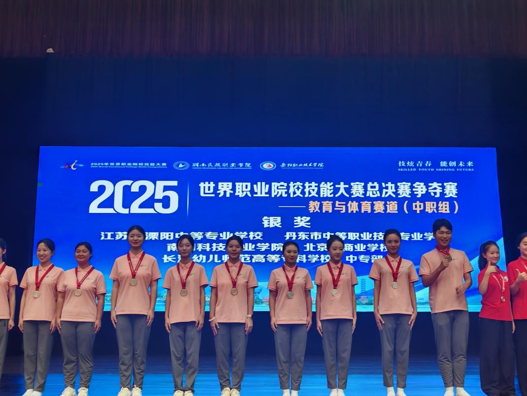 盛夏终章,捷报传响!在刚刚圆满落幕的2025年世界职业院校技能大赛总决赛争夺赛教育与体育赛道(中职组)中,我校学前教育学院刘文艺、郭甜甜、刘佳美3名同学组成的幼儿保育专业代表队,在辅导教师张鸽、王进的带领下凭借扎实的专业技能和精彩的赛场展示,从全国63支参赛队伍中脱颖而出,一举摘得全国总决赛银奖,为学校争光,为行业添彩!