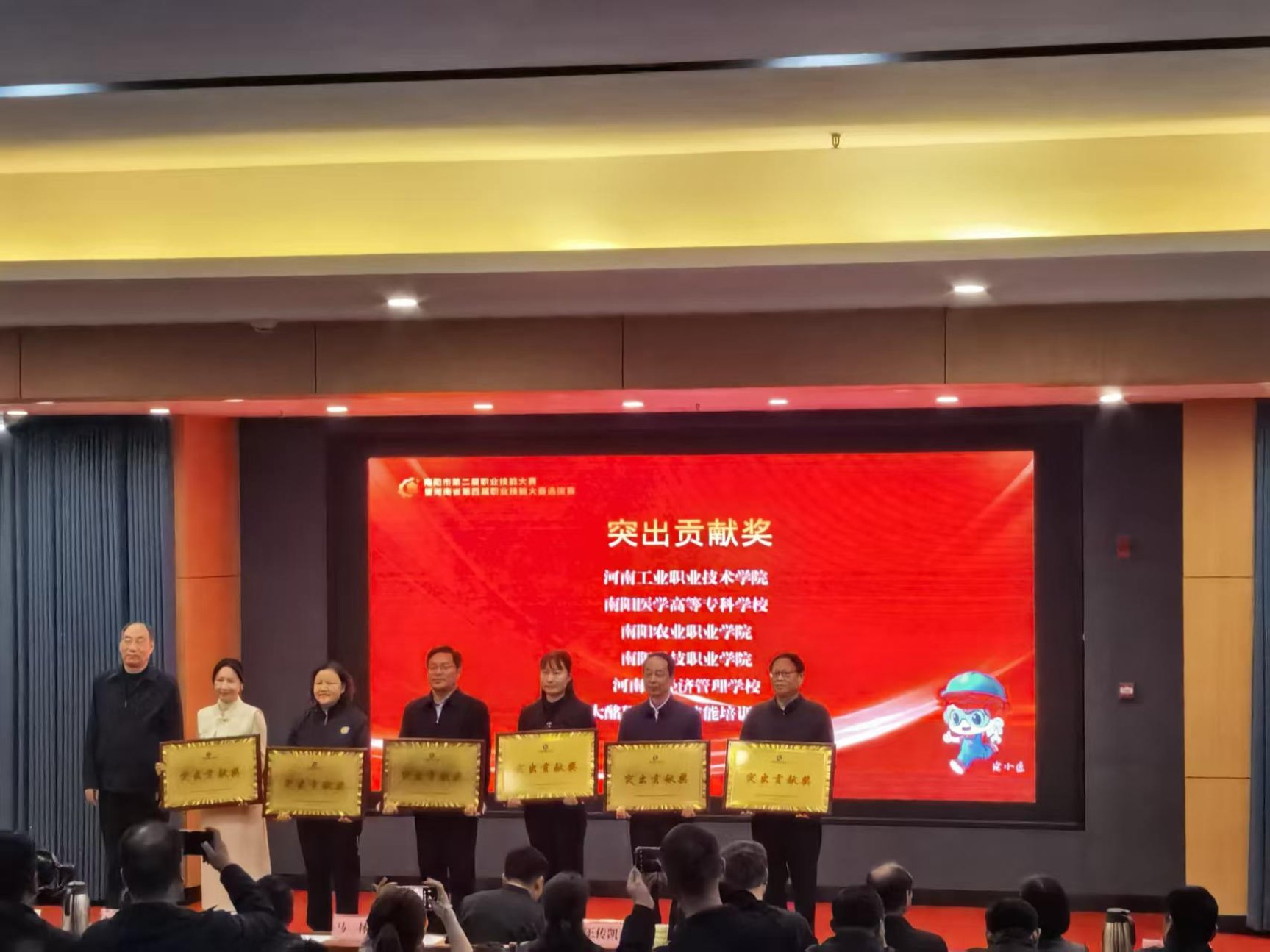 4月3日,南阳市第二届职业技能大赛暨河南省第四届职业技能大赛选拔赛圆满落幕,闭幕式在主赛场举行。本次大赛以“技能赋力产业,匠心筑梦南阳”为主题,汇聚全市22支代表团、297名选手同场竞技,我校参赛选手不负众望、奋勇拼搏,最终斩获两金一银两铜的优异成绩,同时荣获“优秀组织奖”和“突出贡献奖”,用精湛技艺彰显我校职业教育的扎实成效。