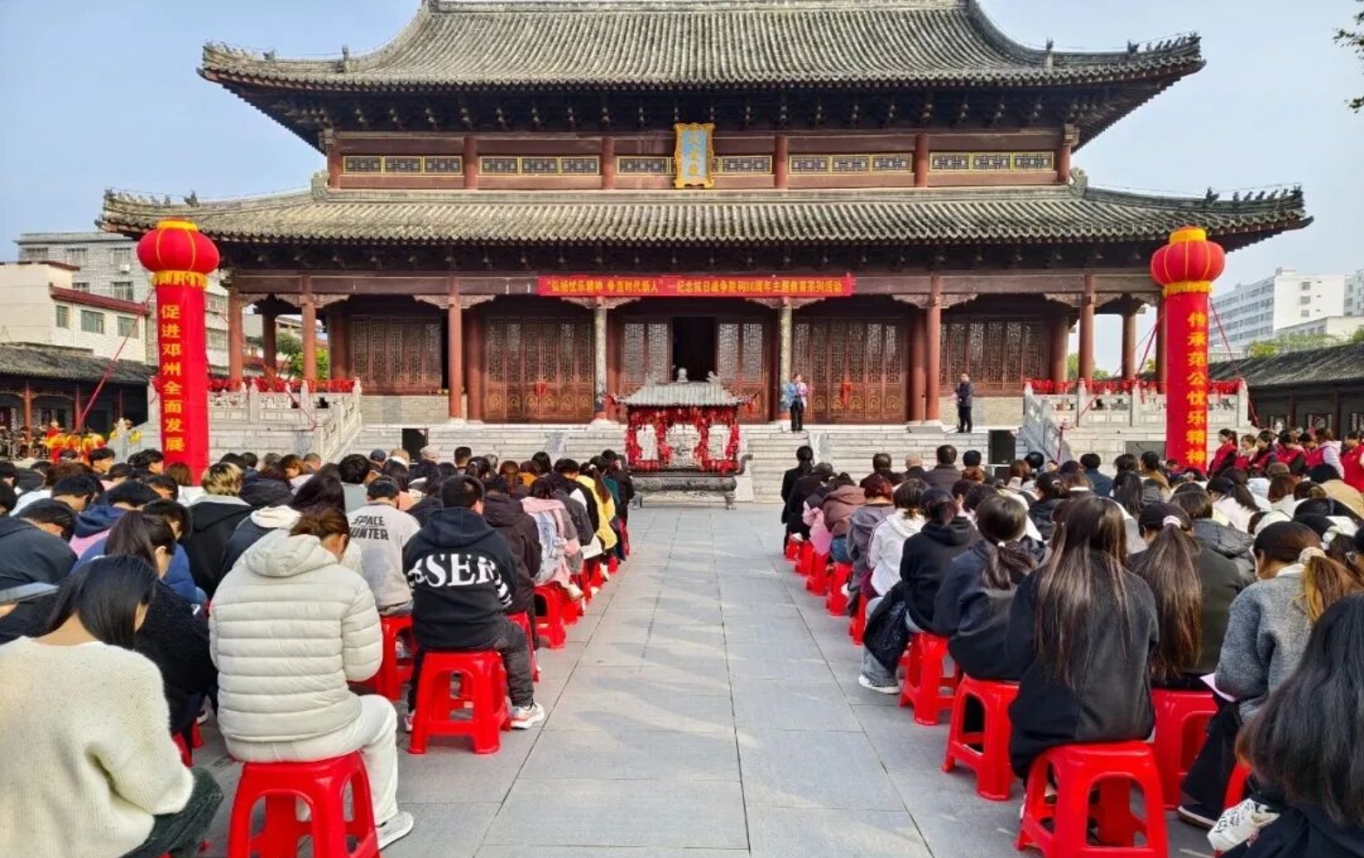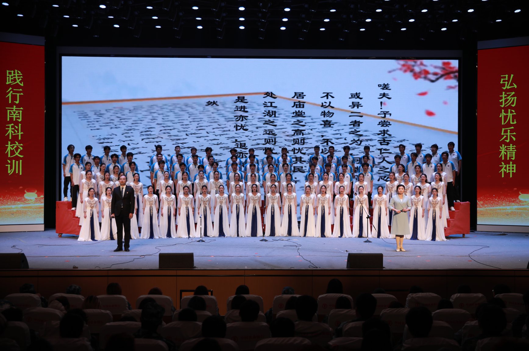 10月27日至28日,我校携手邓州市范仲淹文化研究会,共同举办“弘扬忧乐精神 争当时代新人 —纪念中国抗日战争胜利80周年”主题教育系列活动。活动以范仲淹“先天下之忧而忧,后天下之乐而乐”的忧乐精神为核心纽带,设启动仪式、专场报告会、座谈会、汇报展演、主题作品展五大板块,将家国情怀与时代使命深度融合,在千年文脉之地奏响传承精神、勇担使命的时代强音。