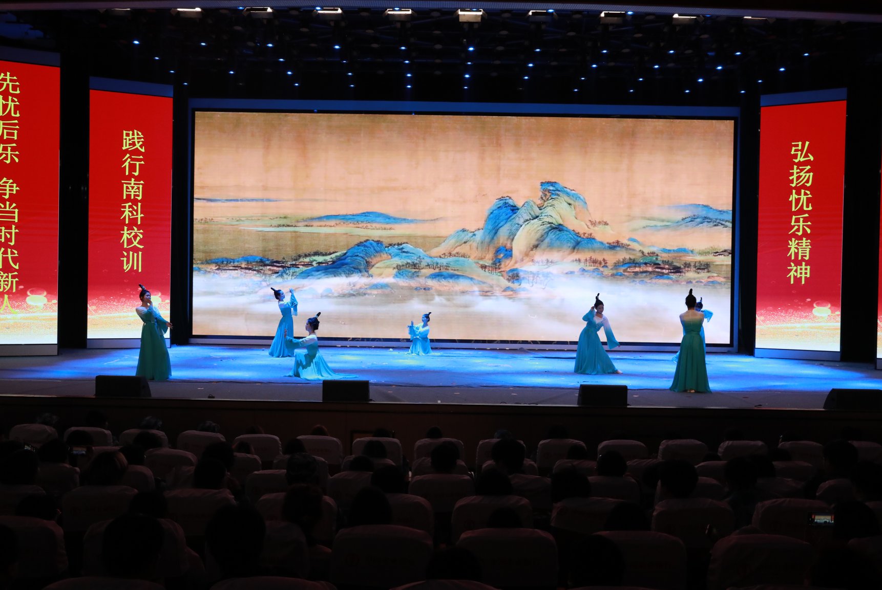 当日下午,汇报展演在星海艺术中心演播厅上演。展演形式灵活多样,涵盖舞蹈、情景剧、歌曲、民乐等,让忧乐精神与抗战精神的内涵通过丰富的艺术形式深入人心。