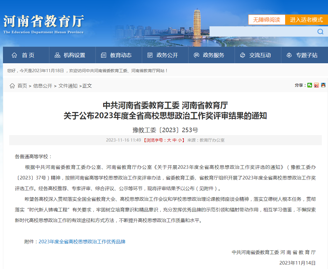 喜报!我校荣获2023年度全省高校思想政治工作优秀品牌