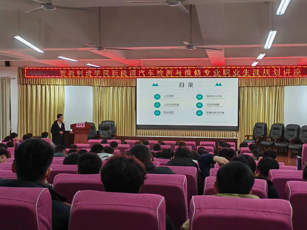 为进一步普及大学生职业生涯规划理念,提升学生的职业素养和就业能力,2月17日下午,智能制造学院邀请校企合作单位广东拓野教育投资有限公司的两位教师,分别对工业机器人专业和新能源汽车专业的学生进行职业生涯规划讲座。