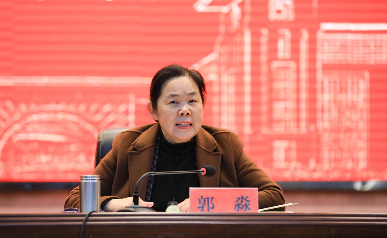 校长郭淼在讲话中回顾了过去一年学校在党建引领、人才培养、内涵建设、师资队伍建设、产教融合、对外交流、社会服务、民生保障等方面取得的新进展、新成绩。她指出,2026年是学校“十五五”规划的开局之年,也是学校“双高”建设攻坚克难的关键之年,必须坚持以“高水平专业群建设”和“办学能力评价达标”为主线,全力推动各项事业实现新突破。她从五个方面对2026年重点工作作出部署:一是强化政治引领,在党的建设质量上实现新提升;二是坚持立德树人,在人才培养成效上实现新突破;三是聚焦内涵建设,在教育教学改革上实现新跨越;四是扩大开放办学,在服务区域发展上实现新作为;五是健全治理体系,在推进高效能治理上实现新跃升。郭淼强调,全校上下要聚焦重点难点,主动领题破局;创新思路方法,善于解题见效;强化协同联动,合力攻坚冲刺。要以“一马当先”的闯劲、“马不停蹄”的干劲、“万马奔腾”的冲劲,全力推进“双高”建设和办学能力评价达标工作取得新突破,为“十五五”事业发展奠定坚实基础。