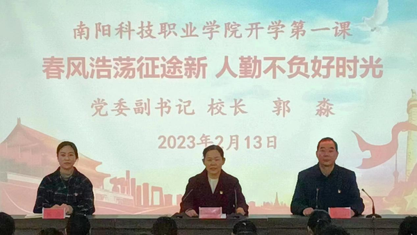一年春作首,万事行为先。课堂开始后,郭淼首先向学生们介绍了我校假期期间的发展变化,指出如今的南阳科技职业学院,“体量”变得更大,舞台变得更宽,征程变得更远,梦想变得更高,希望同学们在“大事可期、大事可成”的黄金期和学校一起踏上新征途,实现新梦想。