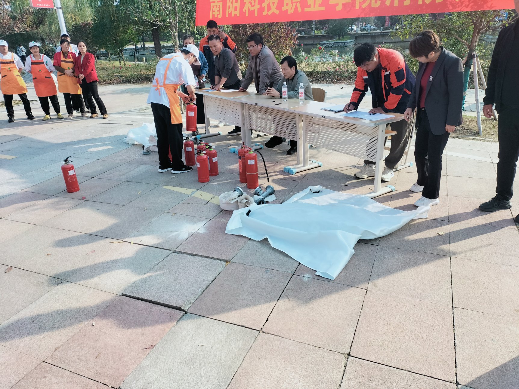 根据《南阳科技职业学院119消防宣传月方案》,为进一步强化校园重点区域消防安全管理,提升餐厅、超市从业人员的应急处置能力,切实保障师生生命财产安全,11月5日下午,保卫处联合后勤服务中心组织餐厅、超市共120余名工作人员开展消防技能专项考核。通过"理论培训+实操演练+情景考核"三位一体模式,为校园消防安全再添坚实保障。