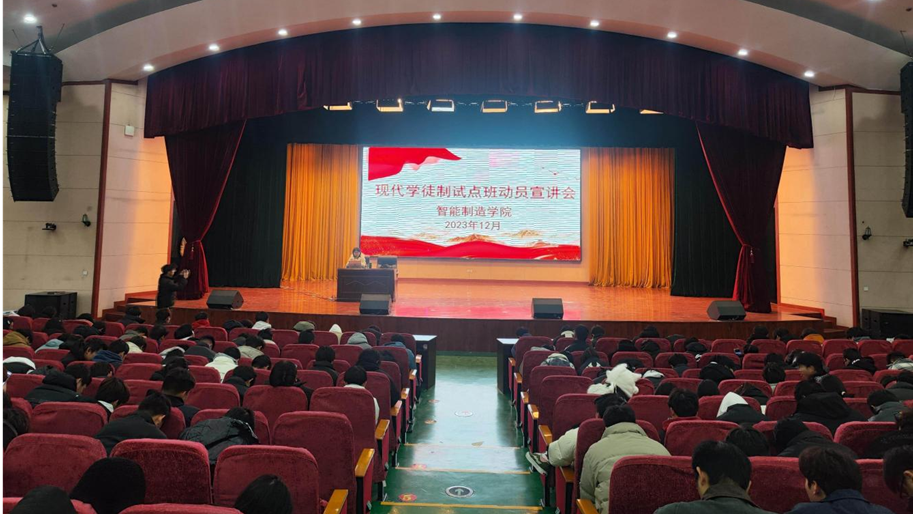 2023年12月6日晚,智能制造学院现代学徒制动员宣讲会在我校学术报告厅举行。智能制造学院党支部书记袁玉杰、副院长何文丛,数控技术专业负责人李晓静、部分专业教师以及企业的代表出席了会议。