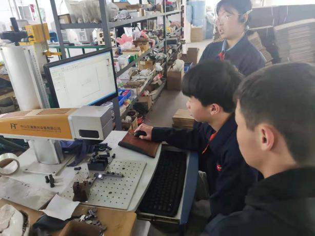 学员在尝试对工件进行激光打字。