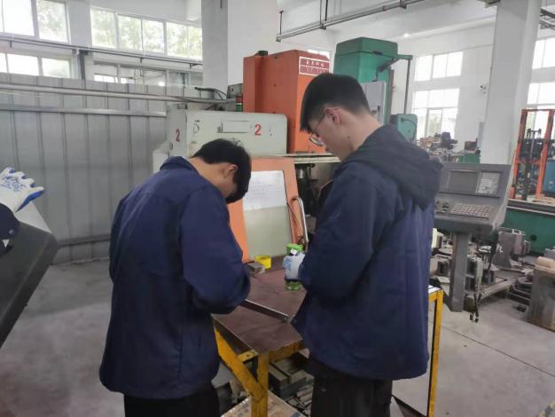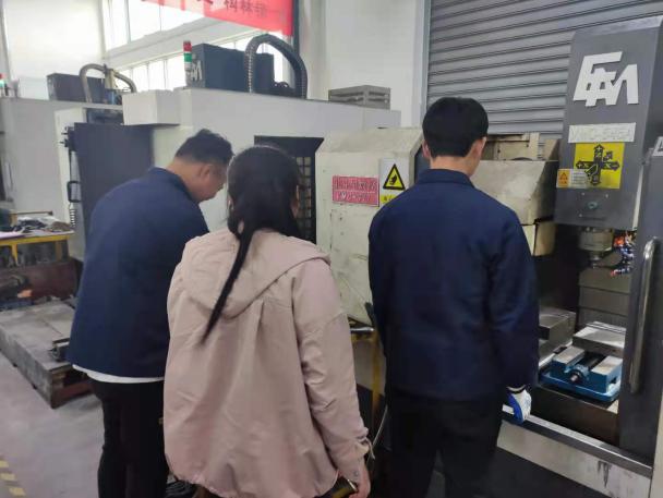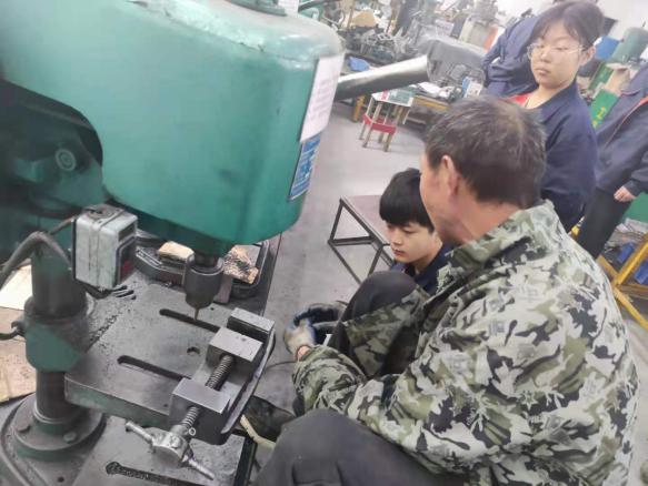 磨床师傅在为学员讲解工件加工规范和标准。