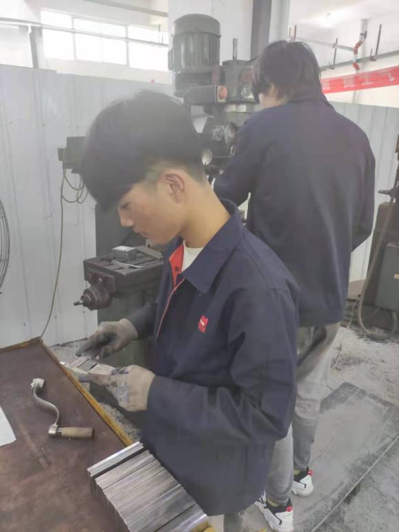CNC组和数控铣组学员在认真上岗完成任务中。